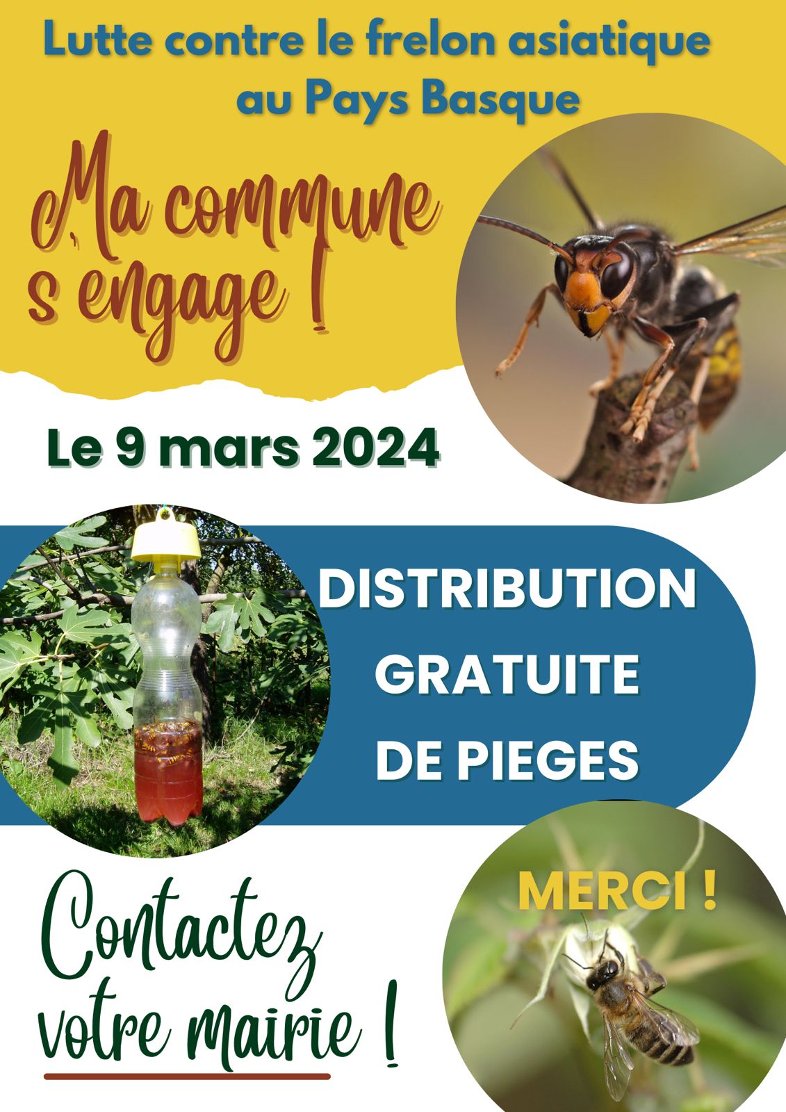 Pour l’animation « sensibilisation et distribution de pièges du 9 mars », vous pouvez aussi solliciter vos centres de loisirs, périscolaires pour préparer une banderole et, ou la fabrication de pièges.